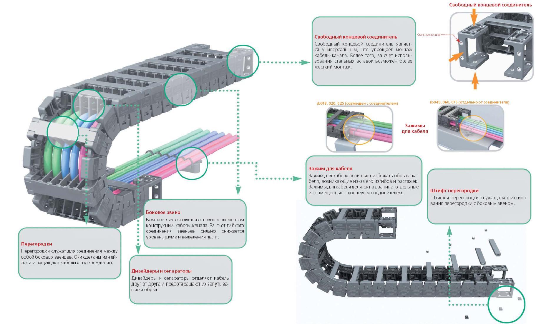 Конструкция кабелеукладчика SABIN CHAIN