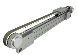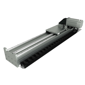 базе алюминиевого профиля с использованием рельсовых направляющих качения и косозубой рейки.